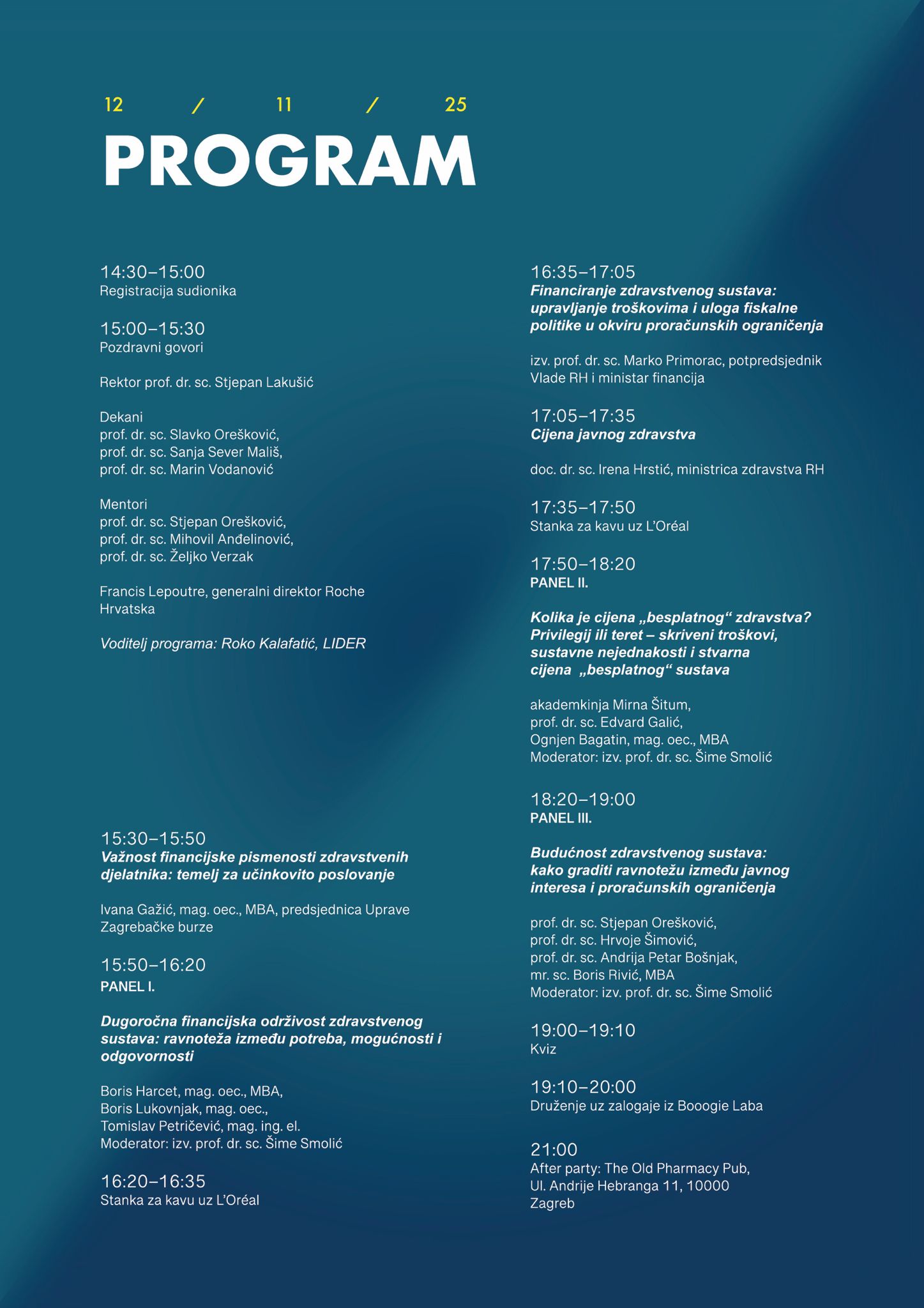 12. studenoga 2025. u dvorani Čačković na Medicinskom fakultetu Sveučilišta u Zagrebu okupljamo istaknute kreatore zdravstvenih politika i odluka u Hrvatskoj – akademsku zajednicu, stručnjake iz javnog i privatnog sektora te predstavnike farmaceutske industrije i industrije medicinske tehnologije.