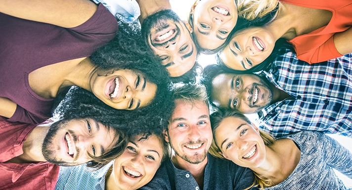 Multiracial best friends millennials taking selfie outdoors with back lighting – Happy youth friendship concept against racism with international young people having fun together – Azure filter tone