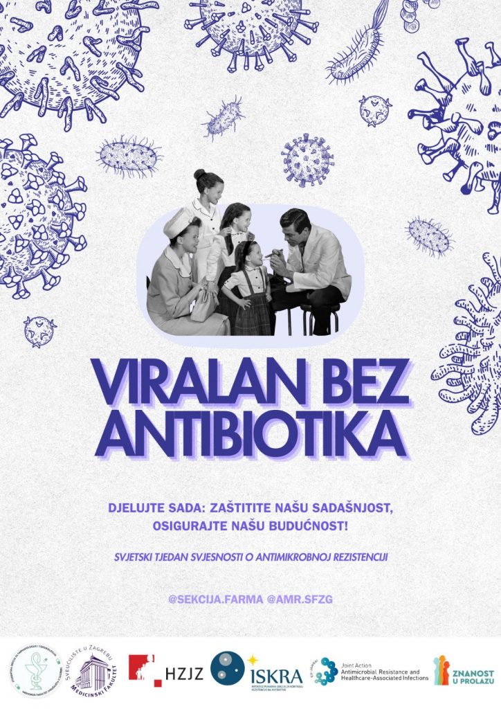 U sklopu tjedna antimikrobne rezistencije Svjetske Zdravstvene Organizacije (WHO), 20. i 21. studenog, na Cvjetnom trgu u Zagrebu, od 9 do 12 sati, organiziramo javnozdravstvenu akciju "Budi viralan bez antibiotika" usmjerenu na podizanje svijesti građana o ispravnoj upotrebi antibiotika i globalnoj opasnosti od antimikrobne rezistencije.