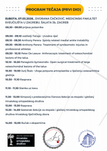 Međunarodni kolegij o liječenju ozljeda i oštećenja u području gležnja i stopala – Poslijediplomski tečaj I. kategorije