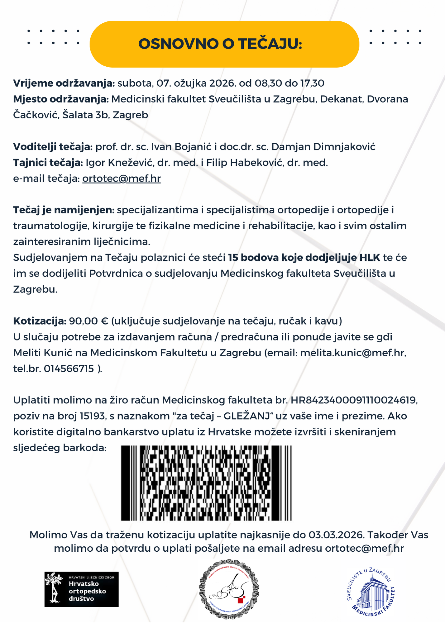 Međunarodni kolegij o liječenju ozljeda i oštećenja u području gležnja i stopala – Poslijediplomski tečaj I. kategorije